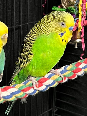 Blue and Gren love to chirp very pretty but not all the time. Gren has a beak issue that is being cared for by a vet. They are calm and curious but very scared of hands.